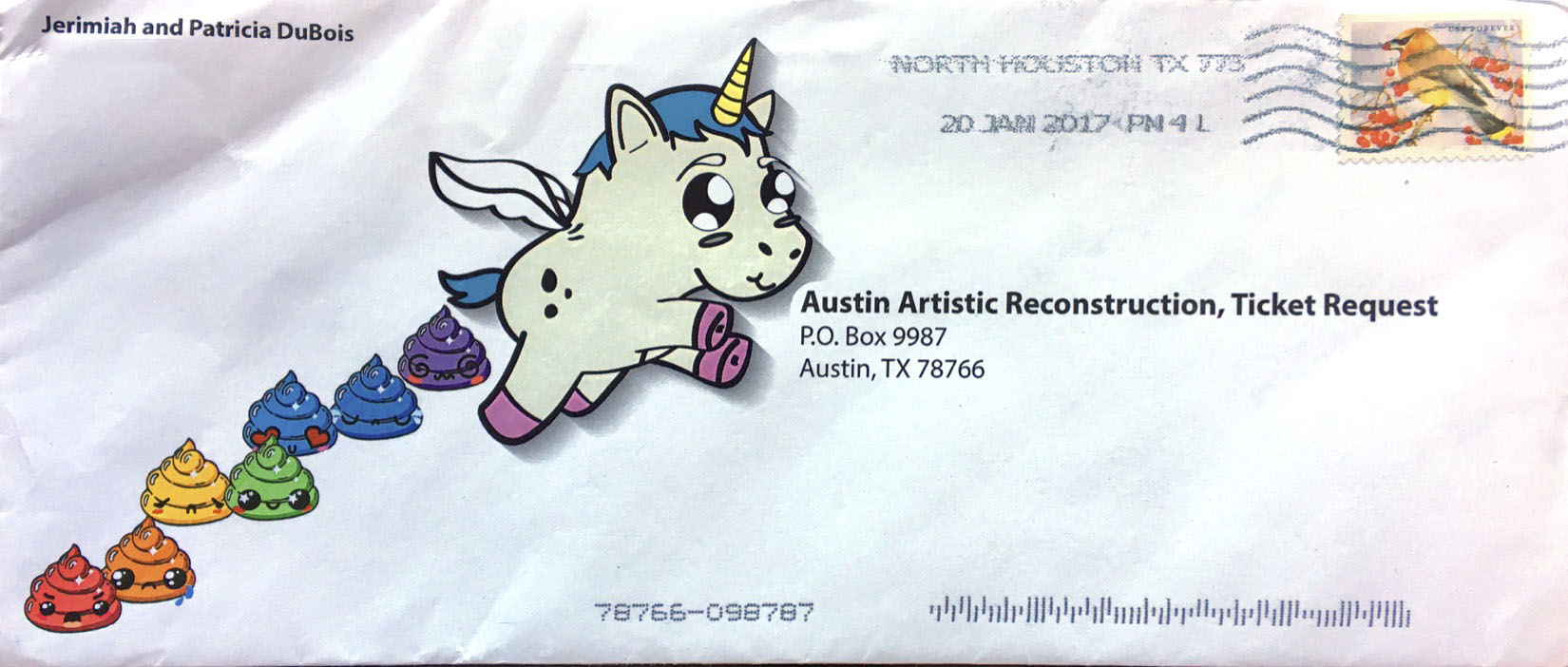 Jeremiah and Patricia Dubois Published March 8, 2017 at 1650 × 702 in Envelope Art 2017 ← Previous Next →